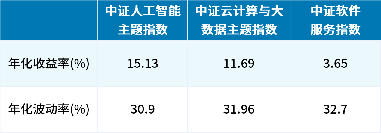 从指数历史表现来看,三只指数表现均受人工智能产业影响,受行业波动影响较大,风险较高。