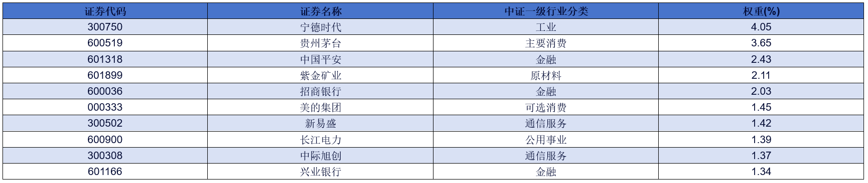 数据来源:中证指数公司官网,数据截至2025年10月13日。以上仅为指数成分的客观介绍,不构成任何分析评价或任何投资建议,不作为投资收益的保证。指数公司后续可能对指数编制方案进行调整,指数成分股的构成和权重可能会动态变化。