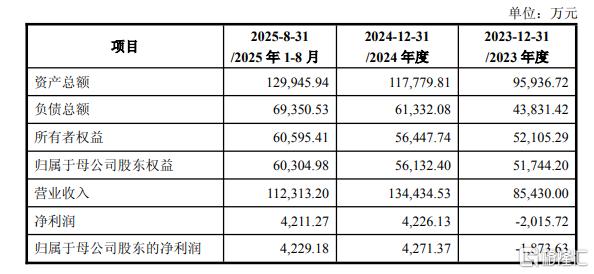 财务数据显示,2023年、2024年以及2025年1-8月,嘉合劲威分别实现营业收入8.54亿元、13.44亿元、11.23亿元,净利润分别为-2015.72万元、4226.13万元、4211.27万元。
