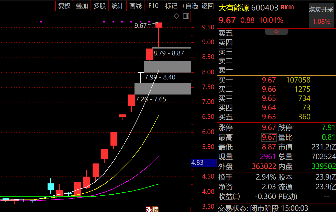 大有能源:近期表现最为亮眼的煤炭股,录得“10天9板”,累计涨幅达116.5%,主营煤炭开采、洗选和销售业务,拥有优质的煤炭资源储备,近期披露的资产重组预案进一步提升了市场预期。