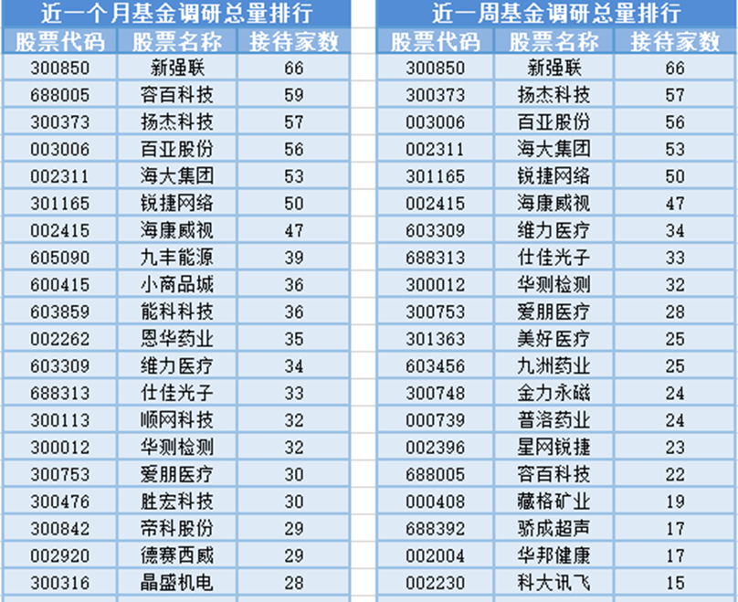 新强联,属于通用设备制造行业,主营业务为大型回转支承和工业锻件的研发、生产和销售。共被66家基金机构调研,然后被调研数量较多的股票是扬杰科技、百亚股份和海大集团,分别接受57家、56家和53家基金机构的调研。