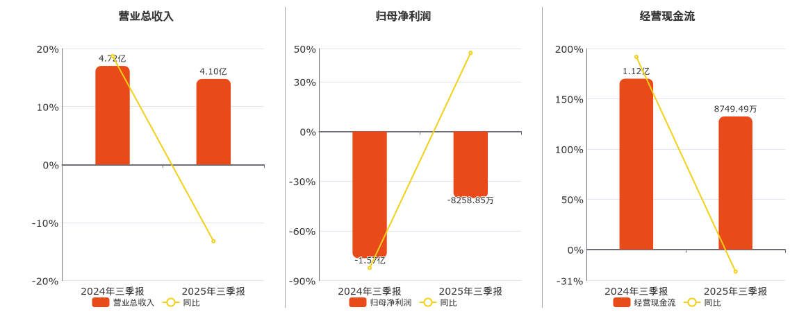公司截至2025年9月30日,*ST绿康营业总收入为4.10亿元,较去年同报告期营业总收入减少6233.00万元,同比较去年同期下降13.21%。截至2025年9月30日,*ST绿康归母净利润为-8258.85万元。截至2025年9月30日,*ST绿康经营活动现金净流入为8749.49万元,较去年同报告期经营活动现金净流入减少2485.04万元,同比较去年同期下降22.12%。
