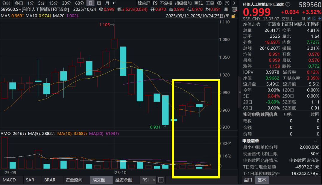 布局新一代科技革命核心技术,分享AI产业爆发过程的发展红利,认准高成长、高弹性的科创人工智能ETF汇添富(589560),紧密跟踪科创AI指数,全面布局AI算力+技术+应用三大环节,充分受益于“政策驱动+技术迭代+基本面稳健增长”三重催化下AI产业链爆发行情,“20CM”涨跌幅优势在行情爆发时抢反弹更快!