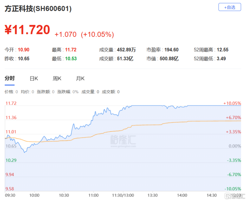 炒股养家:净买入方正科技1.34亿元