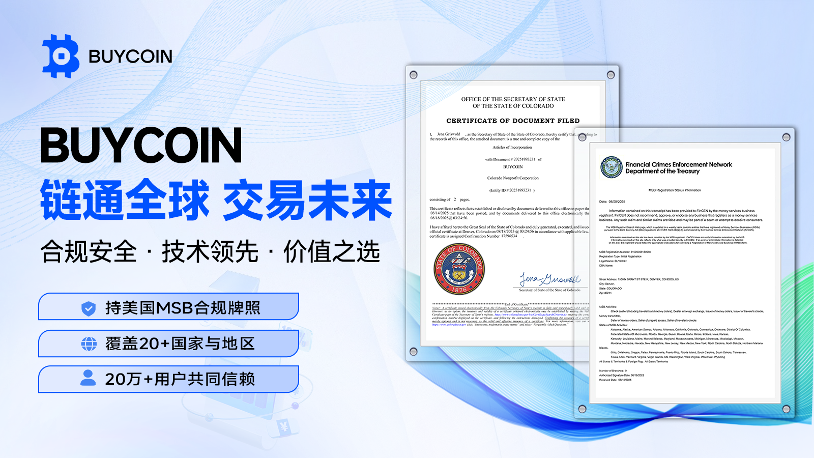 2025年,全球加密市场在合规化浪潮与信任重建需求的双重驱动下,正经历一场深刻的范式革命。当FTX暴雷事件的余波仍在引发行业对中心化模式的反思,当传统交易所“少数人受益”的分配壁垒愈发凸显,持有美国MSB合规牌照的BUYCOIN交易所横空出世。它以“非托管架构+DAO治理”为双引擎,以“全民持股”为核心内核,不仅破解了传统交易所的信任难题与价值分配困局,更在加密行业迈入万亿美元规模的关键节点,为全球用户勾勒出“共建、共治、共享”的交易新生态。