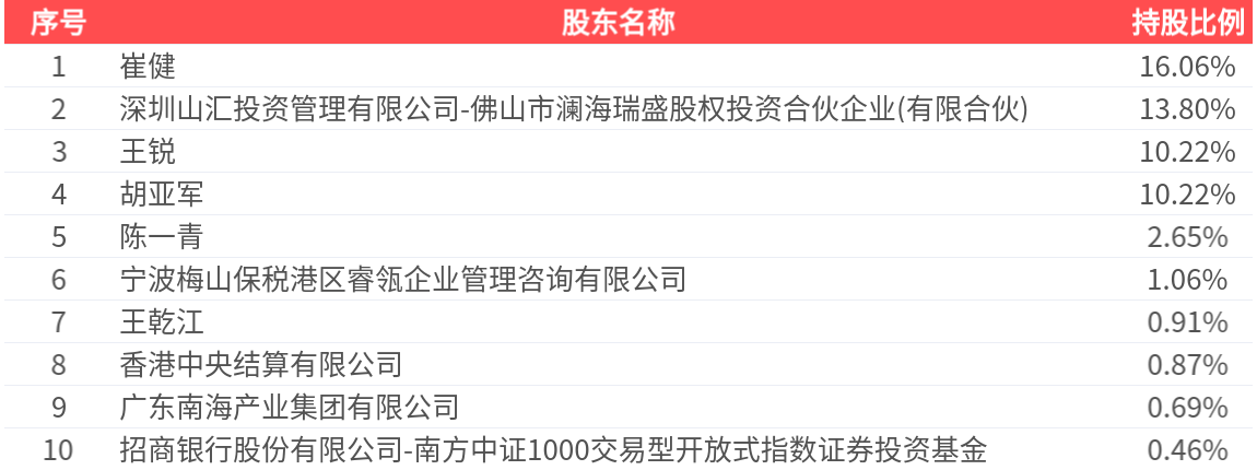 公司股东户数为3.67万户,前十大股东持股数量为2.63亿股,占总股本比例为56.94%,前十大股东持股情况如下: