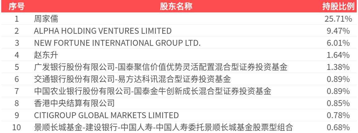 公司股东户数为1.66万户,前十大股东持股数量为9795.19万股,占总股本比例为48.30%,前十大股东持股情况如下: