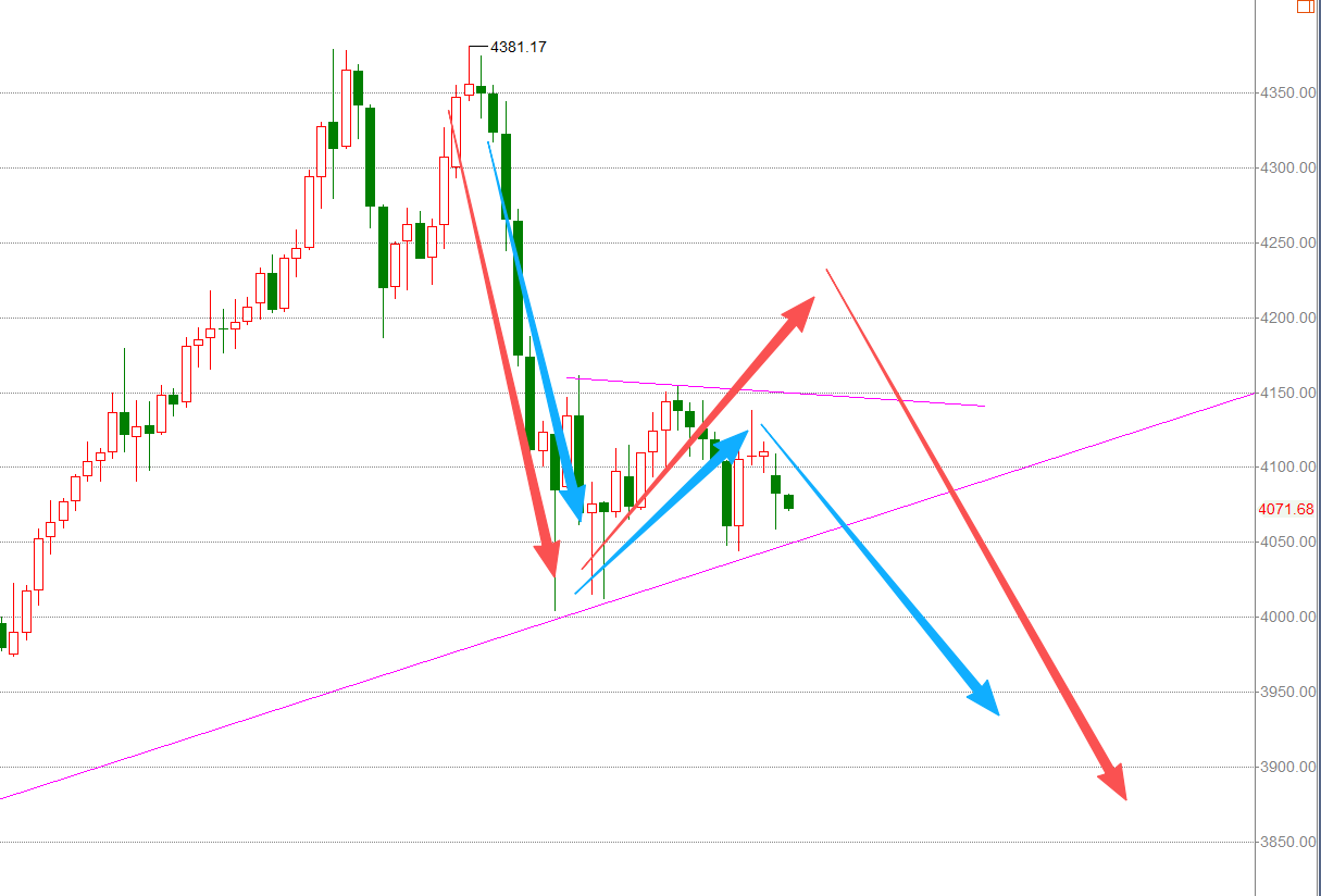 黄金,既然周四凌晨公布美联储利率决议,那么周一、周二估计还是以震荡调整为主。从上周的走势观察来看,经历了周二周三暴跌后,周四周五走了弱势反弹,这也说明短期主趋势是空头,上涨是反弹。今日以震荡对待,下方支撑4045和4003。如果价格有效跌破4003,说明调整结束,将走3浪下跌!