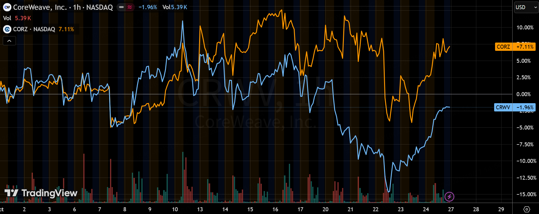 截至2025年10月27日,交易仍处于股东投票阶段(定于10月30日),代理顾问机构ISS于10月20日建议CORZ股东拒绝该提议,但CRWV回应称交易无竞争对手、董事会一致批准,并敦促股东支持,预计于2025年第四季度完成(若获批)。近期股东反对声音增加,导致CORZ股价上涨而CRWV股价波动,凸显市场对交易成败的分歧。