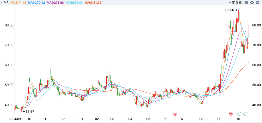 值得一提的是,今年9月以来新泉股份股价持续上涨,从50元/股以下一路涨超87元/股,区间涨近150%。不过,近期该公司股价有所回落。10月27日收盘,其股价报75.15元/股,总市值接近369.5亿元。