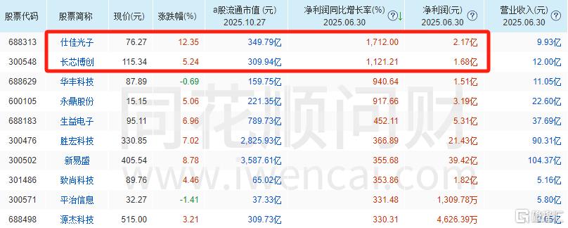 其中,净利润增幅最大的是仕佳光子和长芯博创,这两家今年上半年归母净利润暴涨10倍。仕佳光子实现归母净利润2.17亿元,同比增长1712.00%;长芯博创实现归母净利润为1.68亿元,同比增长1121.21%。