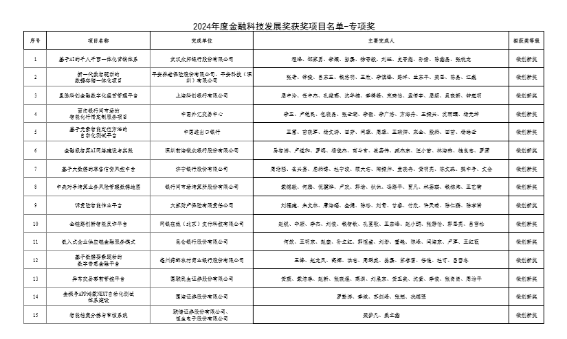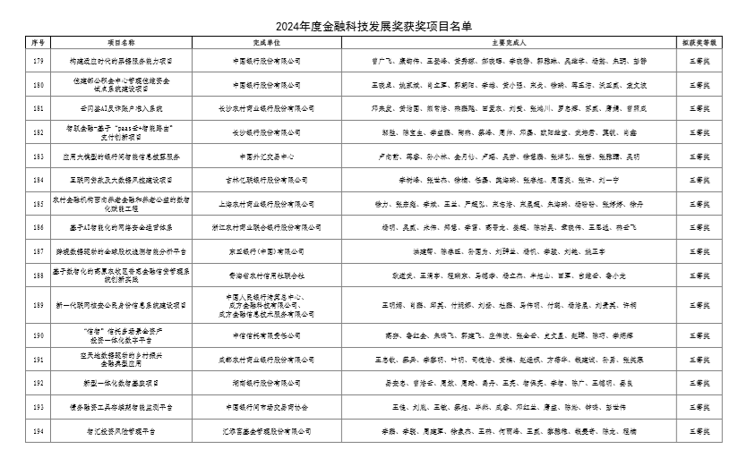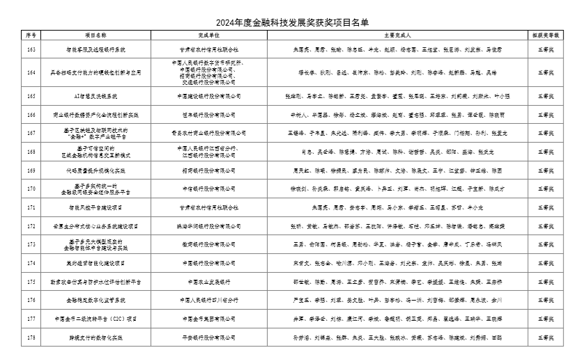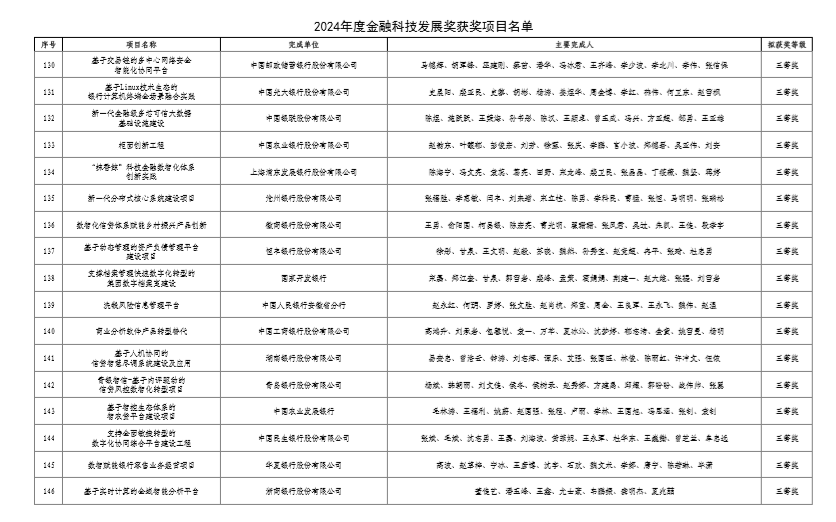 10月27日,中国人民银行公示2024年度金融科技发展奖获奖名单。在290项获奖成果中,银行机构共占据115个席位。从国有大行到城商行、农商行,银行机构凭借在自主可控技术落地、数智服务创新、风险防控升级等领域的成果,展现出金融科技发展中的关键作用,为金融业数字化转型提供实践参考。