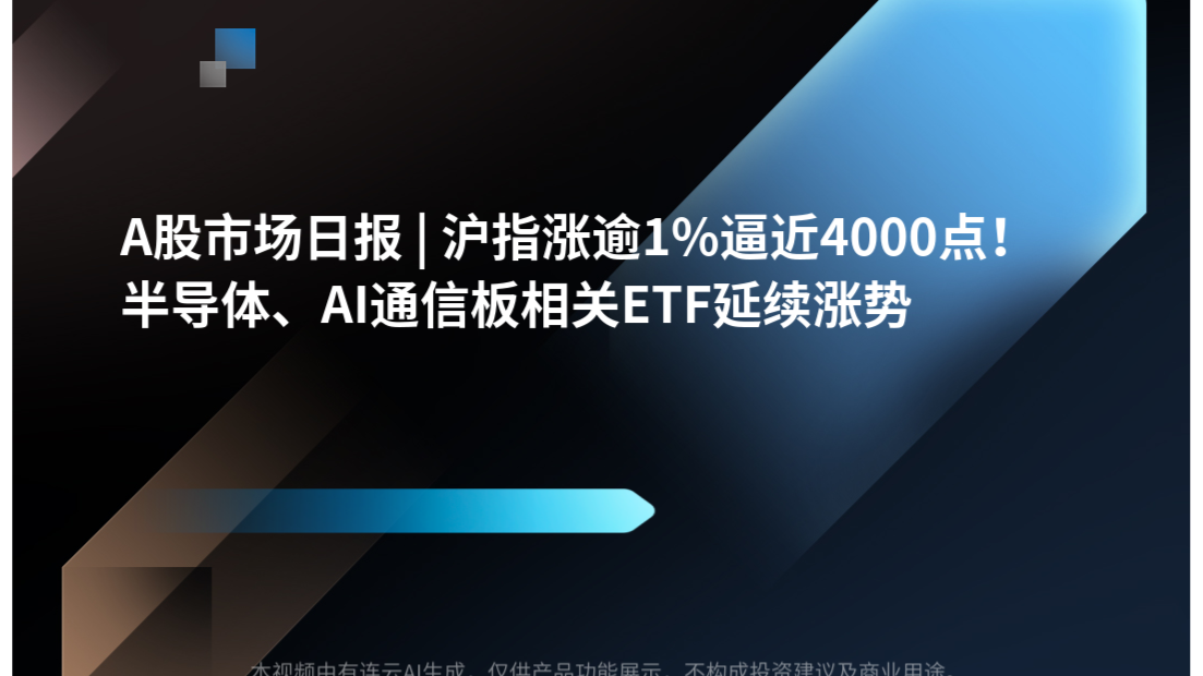A股市场日报 | 沪指涨逾1%逼近4000点!半导体、AI通信板相关ETF延续涨势