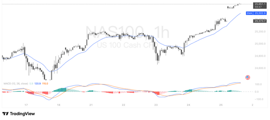 多重利好共振,纳指 100(NAS100)创历史新高延续强势