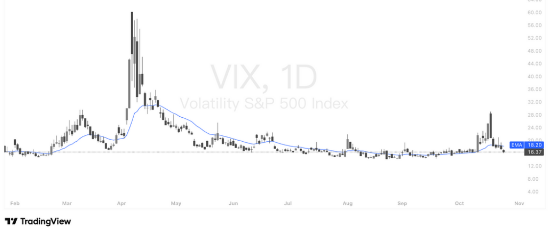 VIX 指数大跌,美股避险情绪显著降温