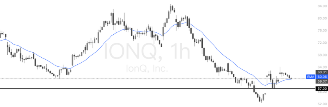 个股方面,在暴涨之后周五有所回调,但是关键位置仍然未破,IONQ57美元支撑位,可维持多头仓位。