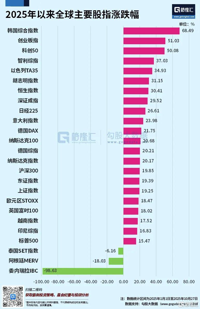 2025年以来,全球主要股指涨幅榜,科创50指数录得50.08%,处于全球领先位置,验证了格隆博士的前瞻性观点。