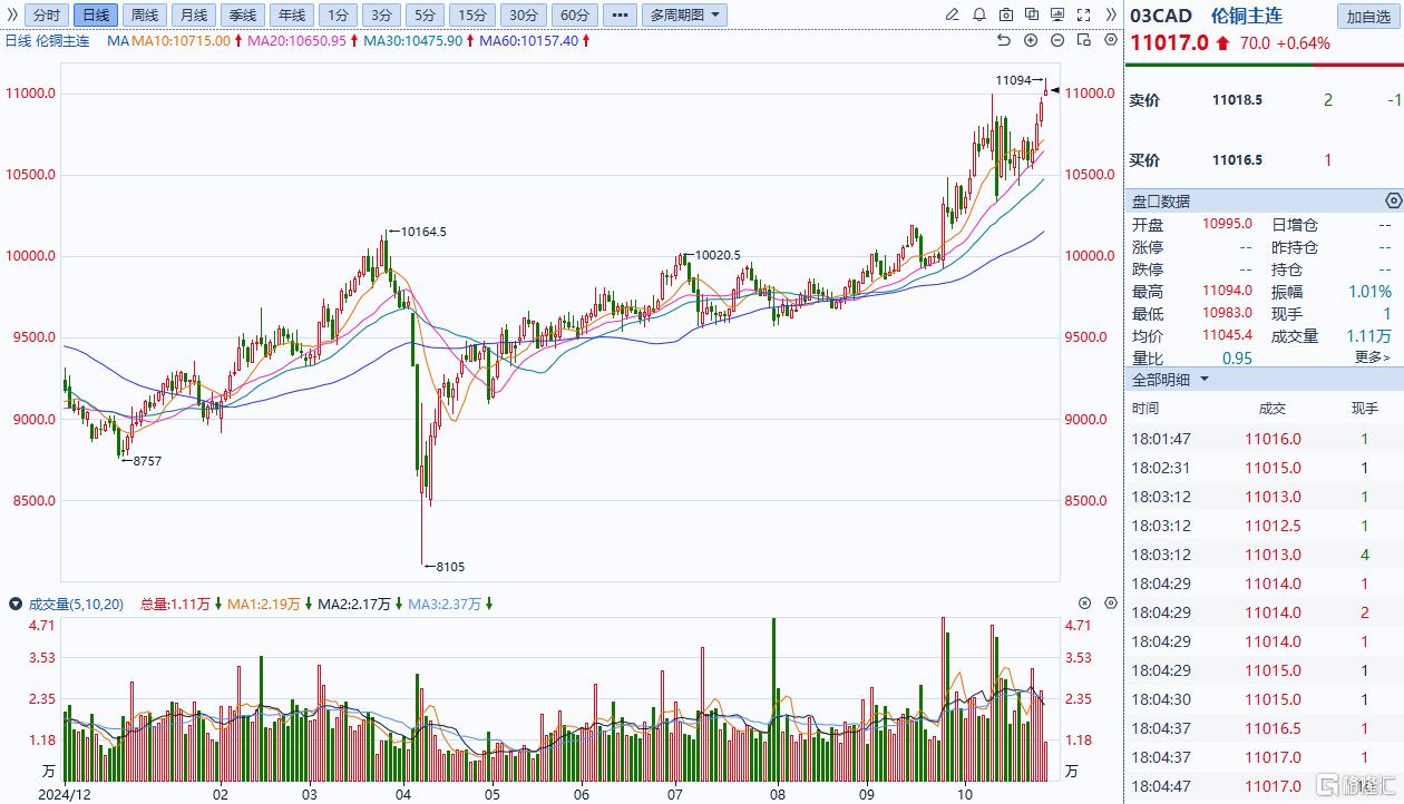 今年以来,国际铜价格涨幅超25%,价格已超过1.1万美元/吨(近9万