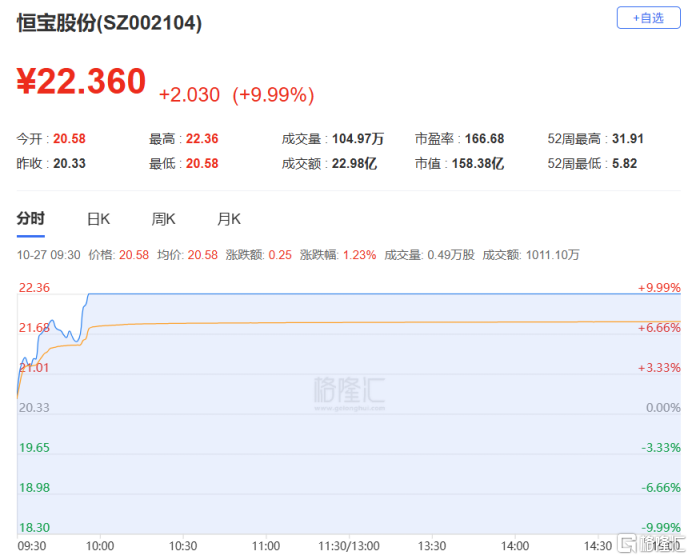 恒宝股份:今日涨停,全天换手率17.50%,成交额22.98亿元,振幅8.65%。龙虎榜数据显示,机构净买入1.12亿元,深股通净买入1.91亿元,营业部席位合计净买入2.04亿元。