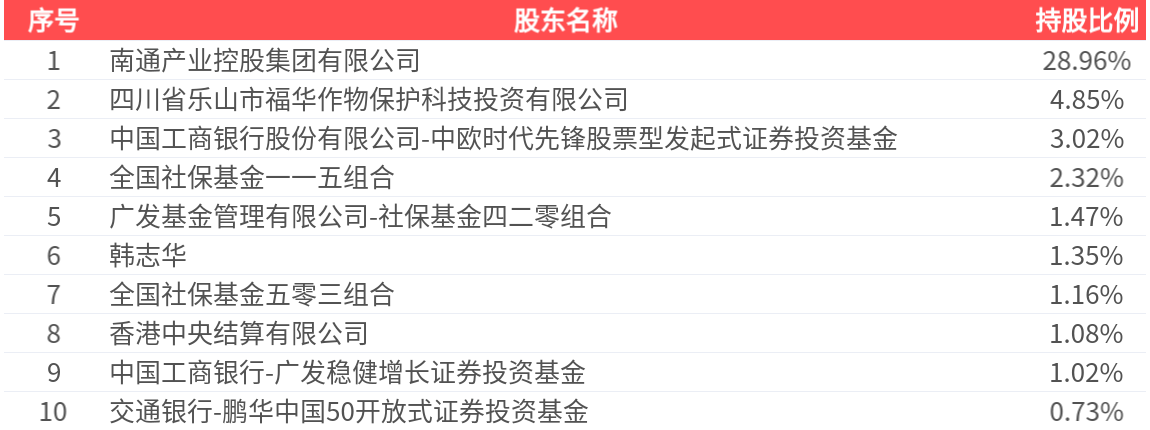 公司股东户数为1.91万户,前十大股东持股数量为1.98亿股,占总股本比例为45.97%,前十大股东持股情况如下:
