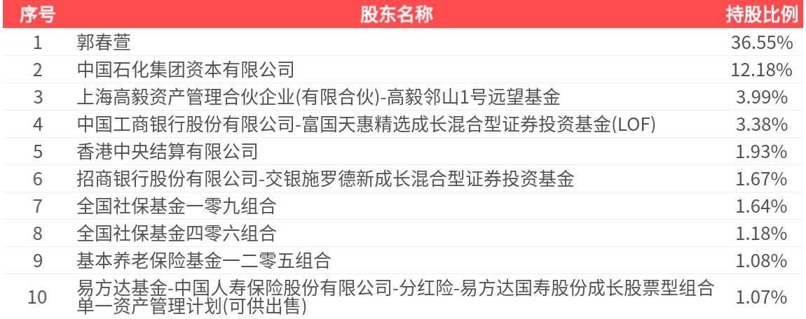 公司股东户数为1.07万户,前十大股东持股数量为1.91亿股,占总股本比例为64.66%,前十大股东持股情况如下: