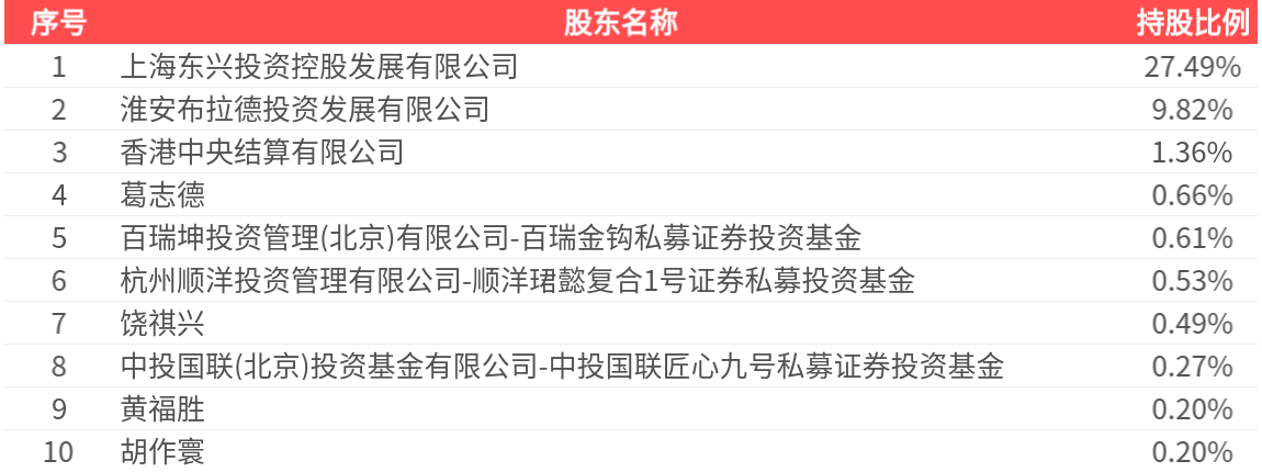 公司股东户数为6.71万户,前十大股东持股数量为2.06亿股,占总股本比例为41.63%,前十大股东持股情况如下: