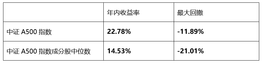 中证A500指数ETF(563880)标的指数年内涨幅达22.78%,跑赢指数60%的成分股,且年内最大回撤为-11.89%,显著优于94.4%的成分股,在走势稳健强劲的同时降低波动率,为投资者带来更好的投资体验,是资产压舱石优选!