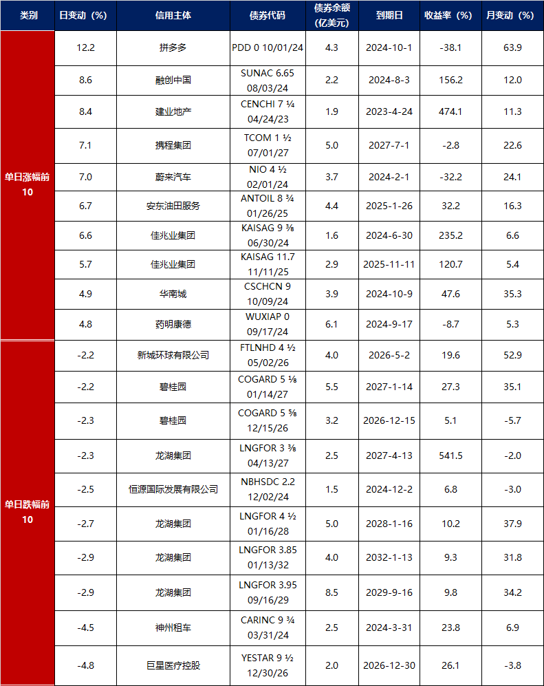 3.中资美元债每日价格变动(截至10月27日收盘)