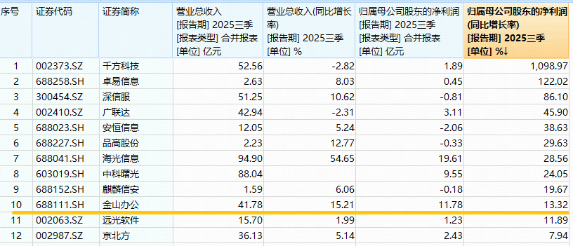 焦点个股方面,金山办公发布最新财报显示,今年前三季度累计实现营业收入41.78亿元,同比增长15.21%;归属于上市公司股东的净利润达11.78亿元,同比增长13.32%。值得关注的是,近期政府部门发布官方文件时首次采用WPS文件格式,或是国家推动关键技术自主可控、保障信息安全的重要体现。