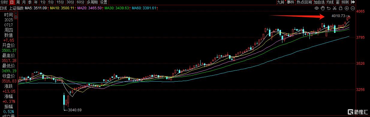 “4000点仍然不是终点。”某头部券商首席策略分析师指出。“当前,中国市场上升的动力是健康的,是可持续的,中国股市还会有新高。”他表示,“接下来如果出现一定调整,没必要太恐慌,行情未到终点”。