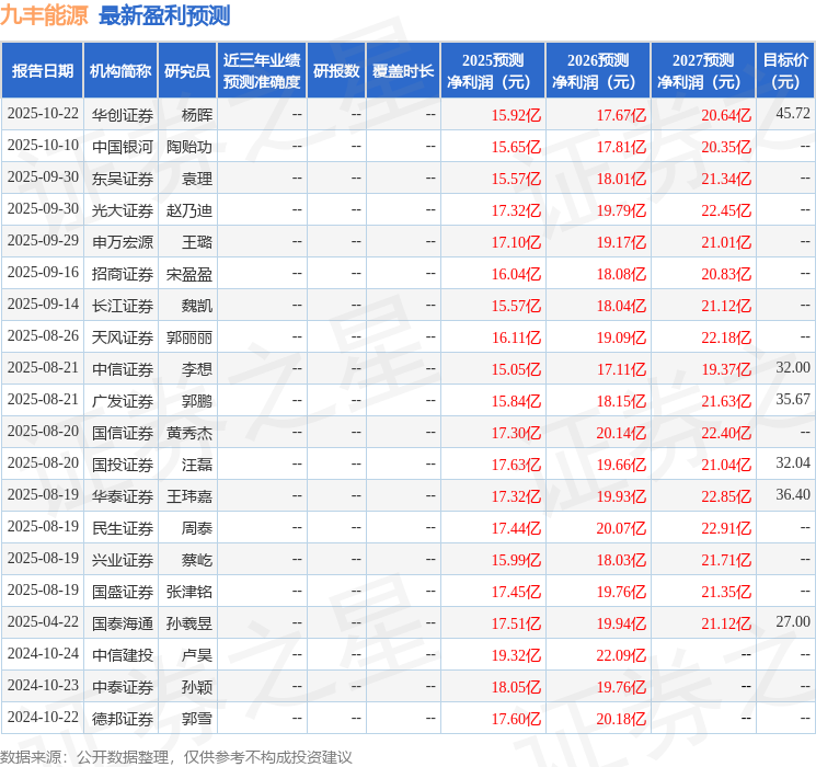最新盈利预测明细如下: