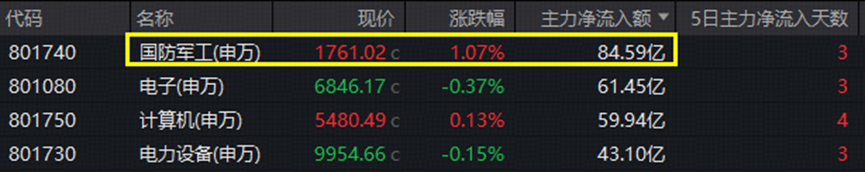 沪指4000点得而复失,国防军工板块逆市领跑全市场!主力资金集中火力猛攻,国防军工(申万)主力净流入超84亿元,在31个申万一级行业中高居首位。