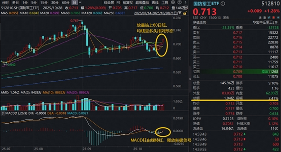 一、国防军工逆市崛起,主力资金高歌猛进!“512810”跻身ETF涨幅榜前五!均线多头排列,升势重启?