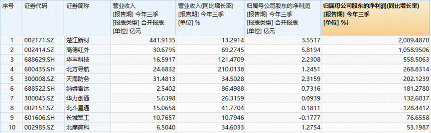 图:国防军工ETF(512810)成份股三季报净利同比增速TOP10(截至2025.10.27)