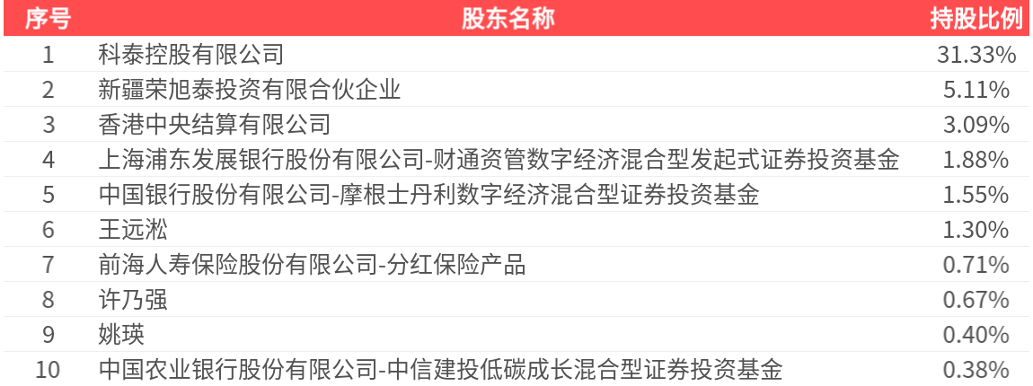 公司股东户数为6.49万户,前十大股东持股数量为1.49亿股,占总股本比例为46.41%,前十大股东持股情况如下: