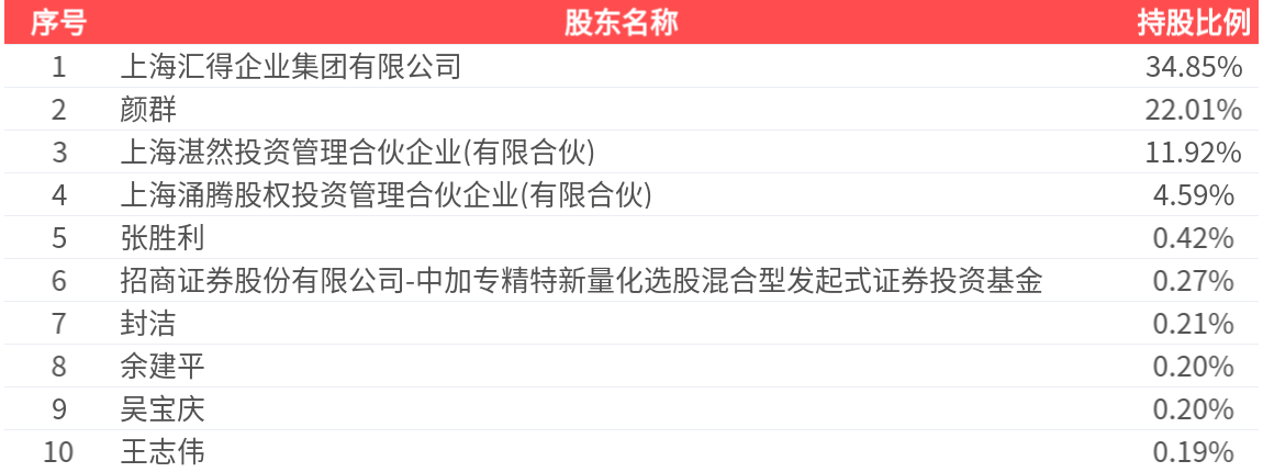 公司股东户数为1.18万户,前十大股东持股数量为1.06亿股,占总股本比例为74.85%,前十大股东持股情况如下: