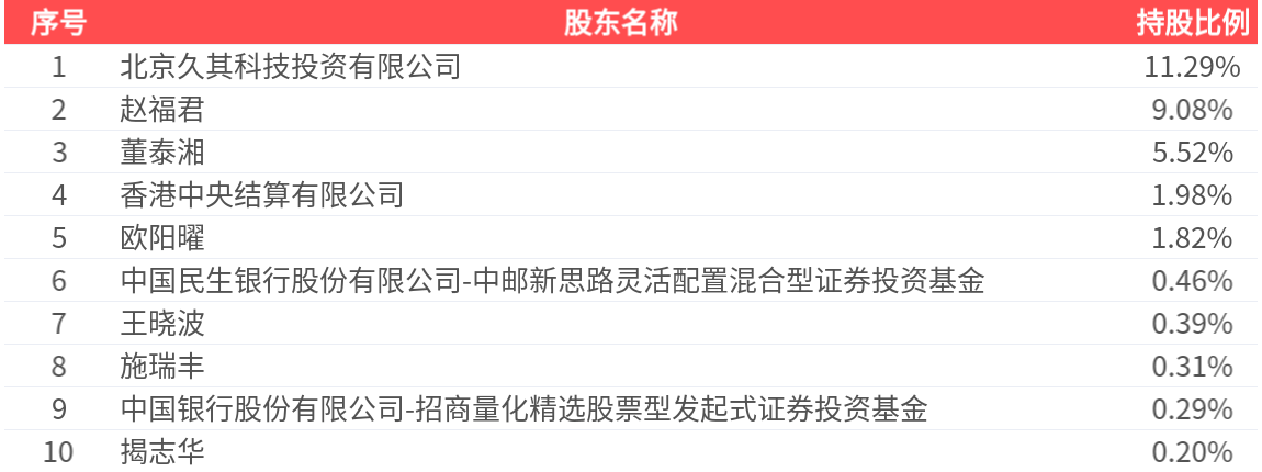 公司股东户数为9.33万户,前十大股东持股数量为2.70亿股,占总股本比例为31.32%,前十大股东持股情况如下: