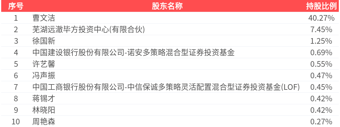 公司股东户数为2.00万户,前十大股东持股数量为1.04亿股,占总股本比例为52.24%,前十大股东持股情况如下: