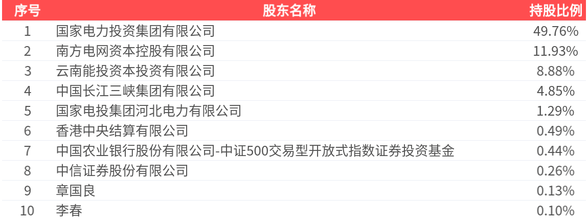 公司股东户数为11.12万户,前十大股东持股数量为42.05亿股,占总股本比例为78.12%,前十大股东持股情况如下: