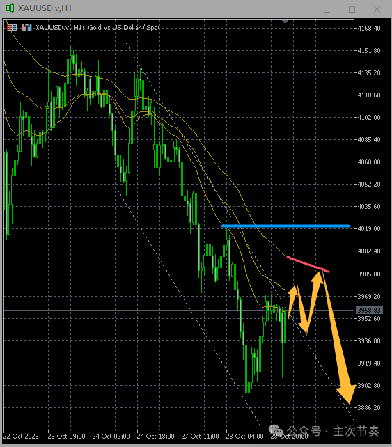 一句话看懂黄金Gold:局部反弹力度较强,表明下跌暂缓反弹延续,是否恢复上涨待定。