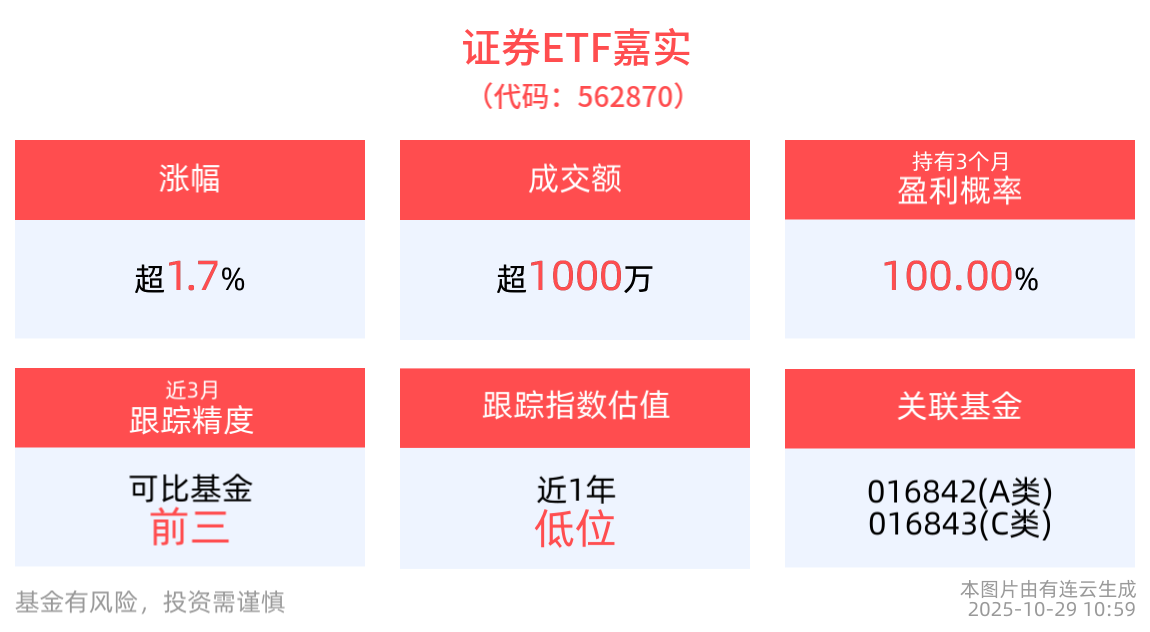 没有股票账户的投资者可以通过证券ETF嘉实联接基金(016842)布局券商板块机会。