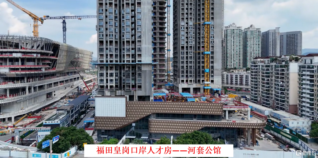 比如河套公馆,,旁边的新皇岗口岸还在建设阶段,周边施工正在安装幕墙,预计要到2026年竣工,并且周边的河套中心写字楼也在安装幕墙中,整个口岸区域后续还会继续开发医院,商业等配套。