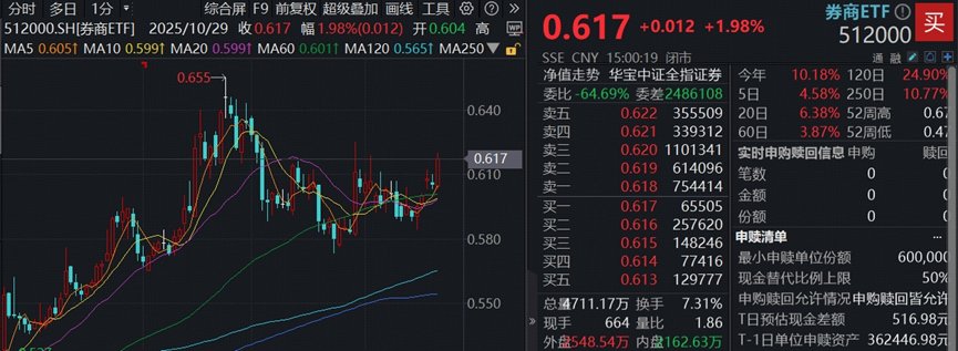 有行情,买券商!券商ETF(512000)及其联接基金(A类 006098;C类007531)被动跟踪中证全指证券公司指数,一键囊括49只上市券商股,是集中布局头部券商、同时兼顾中小券商的高效率投资工具。