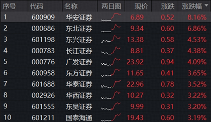 个股方面,三季报逻辑较为明显,华安证券、东北证券绩后双双触及涨停,分别收涨8.16%、6.86%;此外,东兴证券、长江证券、广发证券涨超4%,东方证券、华泰证券、国泰海通等6股涨逾3%。东方财富涨近2%,全天成交额143.86亿元,居A股TOP8。