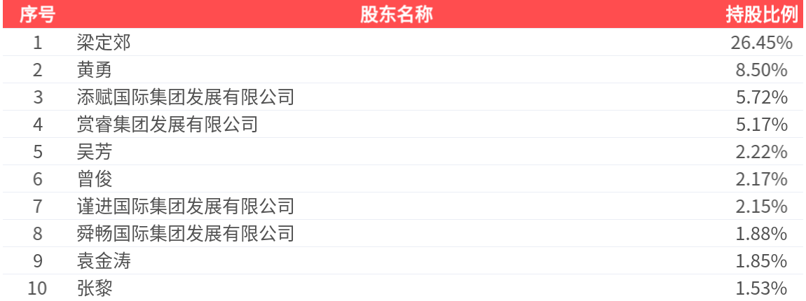 公司股东户数为2.06万户,前十大股东持股数量为2.45亿股,占总股本比例为57.65%,前十大股东持股情况如下: