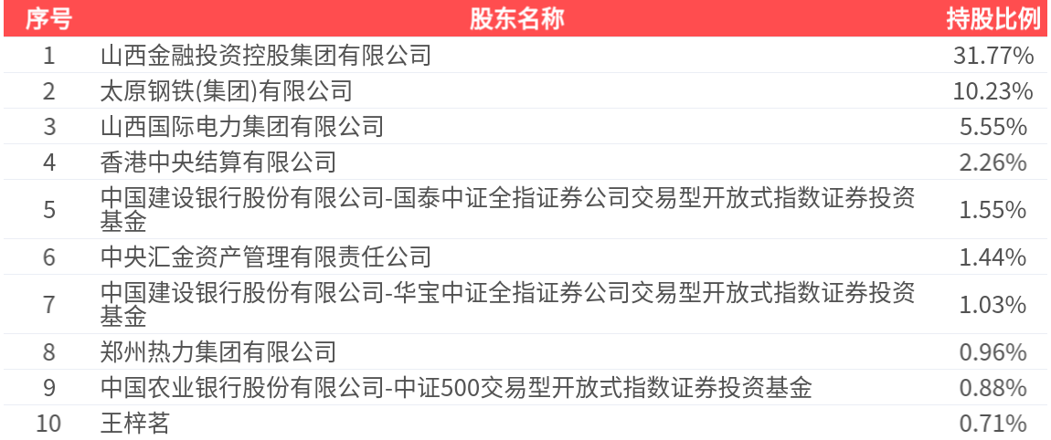 公司股东户数为10.86万户,前十大股东持股数量为20.24亿股,占总股本比例为56.37%,前十大股东持股情况如下: