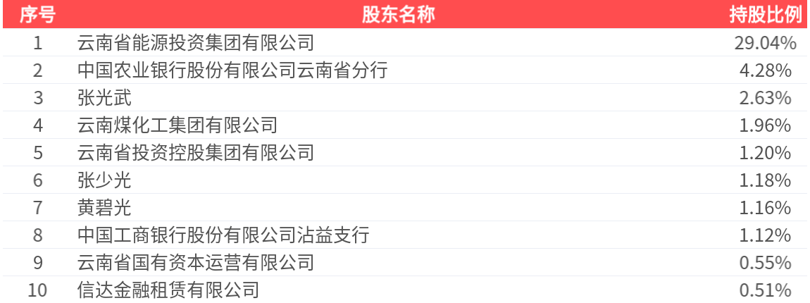公司股东户数为3.40万户,前十大股东持股数量为5.38亿股,占总股本比例为43.63%,前十大股东持股情况如下: