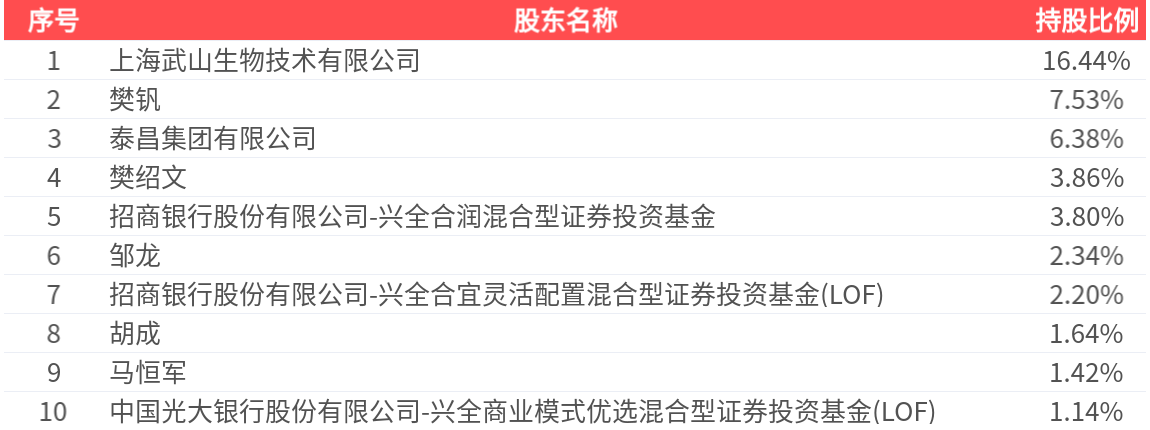 公司股东户数为1.02万户,前十大股东持股数量为1.90亿股,占总股本比例为46.77%,前十大股东持股情况如下: