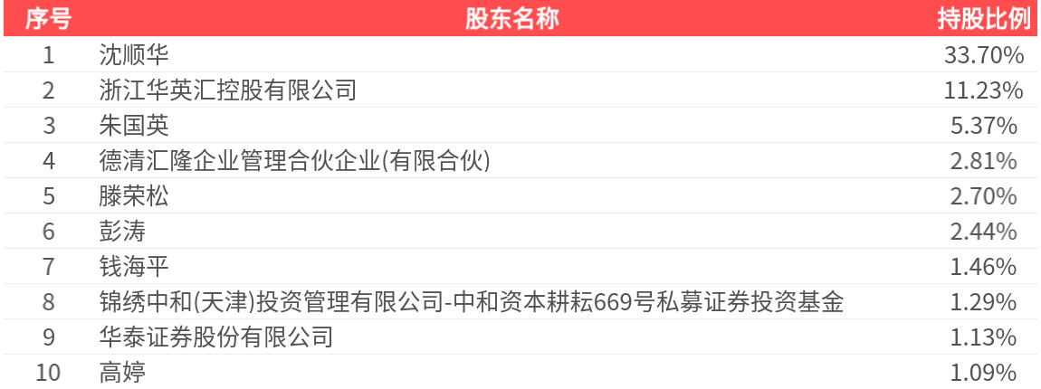 公司股东户数为5694户,前十大股东持股数量为7393.56万股,占总股本比例为63.21%,前十大股东持股情况如下: