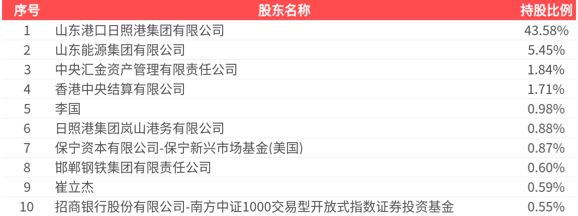 公司股东户数为9.24万户,前十大股东持股数量为17.54亿股,占总股本比例为57.03%,前十大股东持股情况如下: